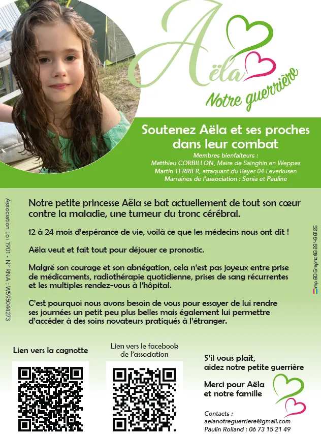 Les parents de la fillette et les bénévoles se mobilisent pour faire connaître leur combat. Un événement dédié à la lutte contre le cancer est d'ailleurs organisé ce week-end, les 12 et 13 octobre, à la salle du Manège à Halluin (Nord) par l’association In’Pact. Les bénéfices seront reversés à l’association "Aëla notre guerrière".