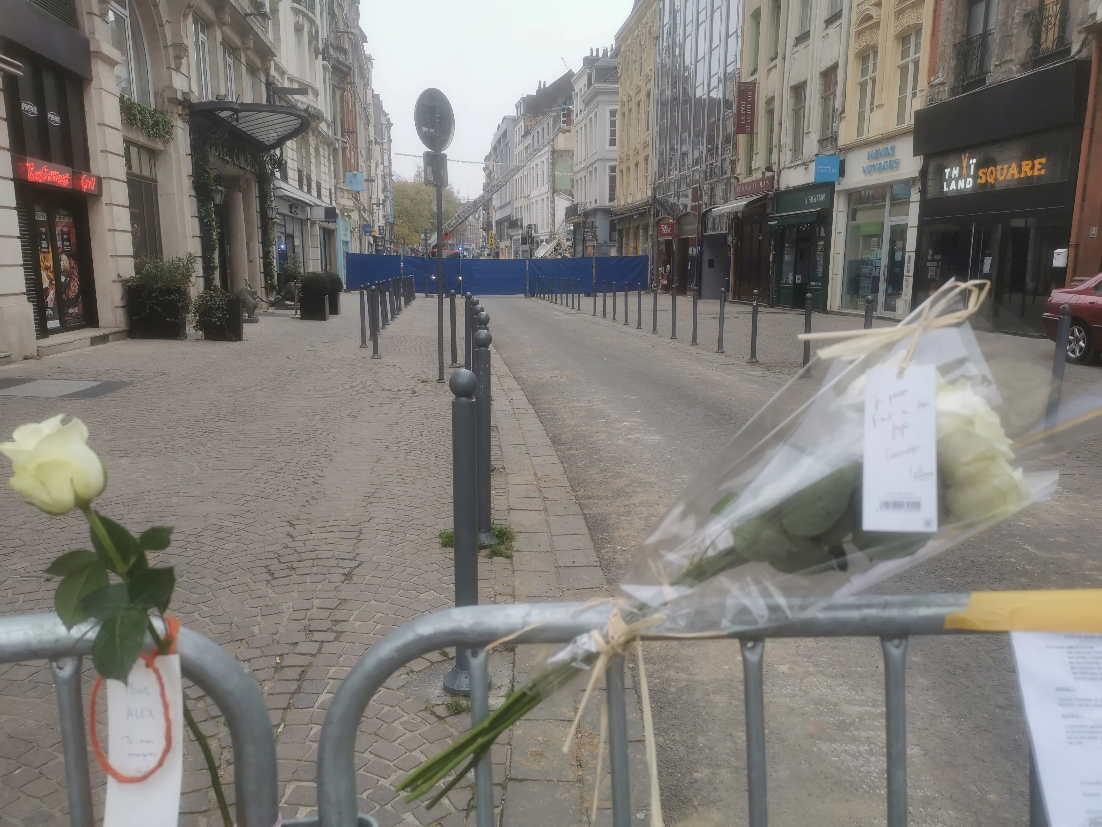 Sur place, nous avons constaté la présence de quelques fleurs déposées sur la barrière de sécurité qui bloque l'accès à la rue Pierre-Mauroy.