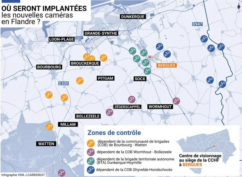 Nos confrères de la Voix du Nord ont réalisé cette infographie, permettant de localiser les 107 caméras qui seront installées.
