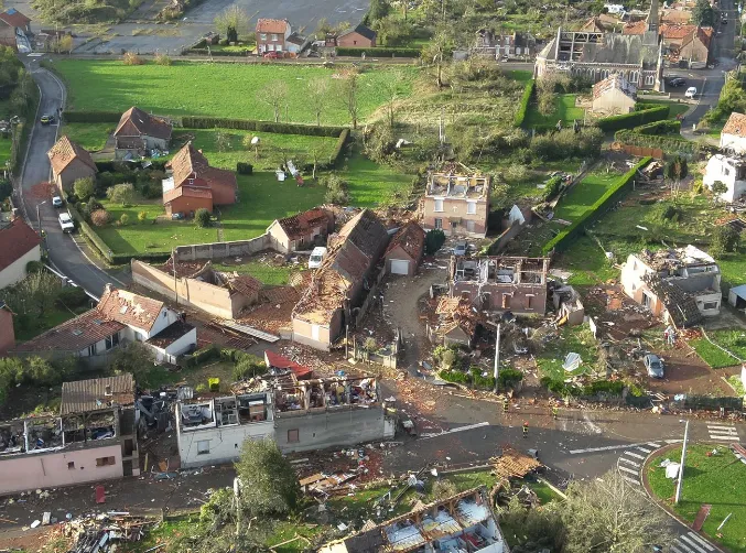 Aux côtés des élus et des habitants de Bihucourt, village du Pas-de-Calais violemment touché par une tornade. Aucune victime n’est à déplorer malgré d’immenses destructions. L’État prendra toute sa part dans l’accompagnement des sinistrés. pic.twitter.com/a6Qd8jycru