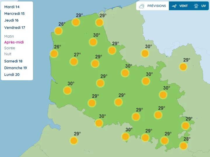 Le gouvernement appelle à la vigilance face à la vague de chaleur qui arrive en France ces prochains jours. Des pics à 40 degrés sont attendus dans la moitié du sud du pays. On dépassera les 30 degrés dans le Nord-Pas-de-Calais vendredi et samedi.